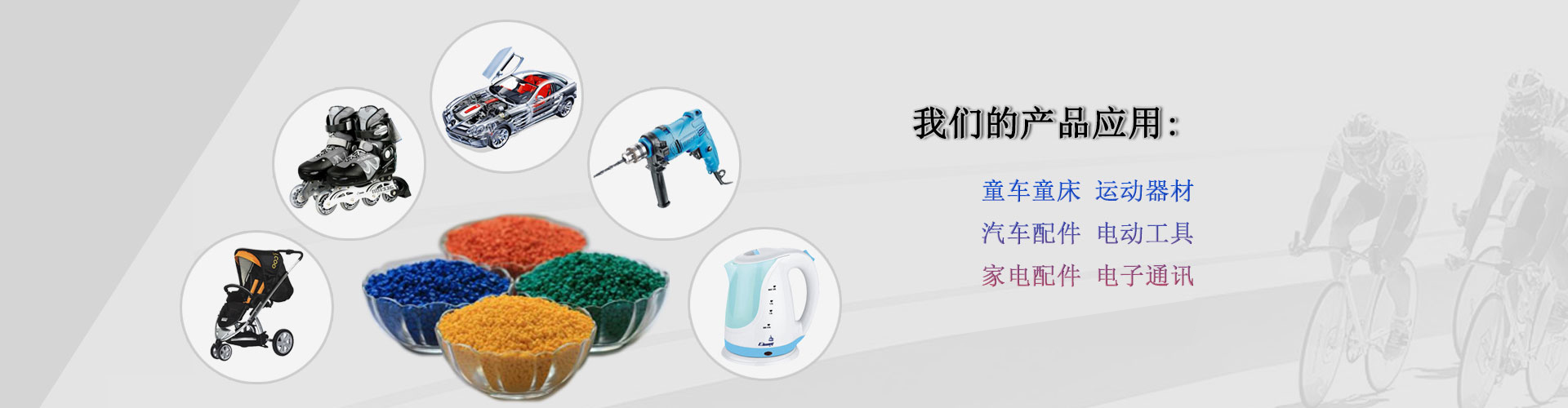 應用范圍:運動器材、家電配件、電子連接器、汽車配件、電動工具、醫(yī)療器材、童車童床、照相器材等。